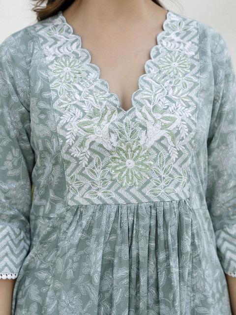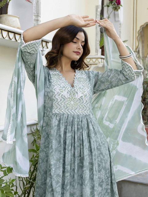 Green embroidered Kurta with Trousers with dupatta