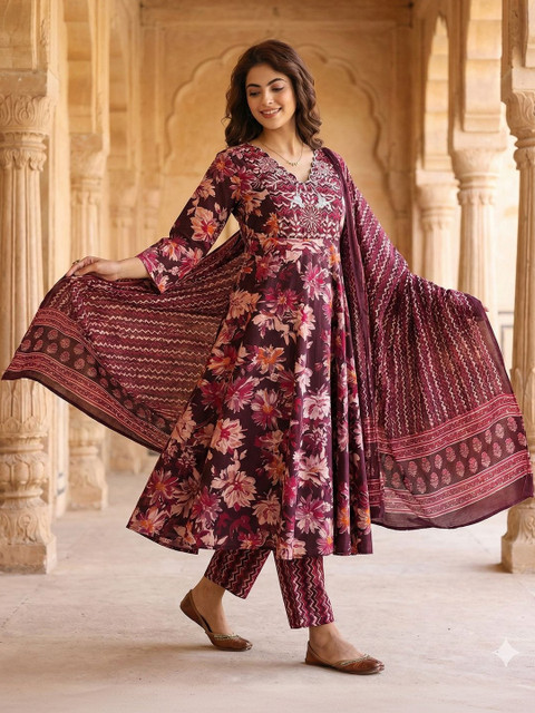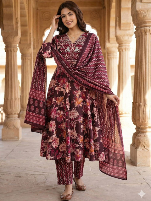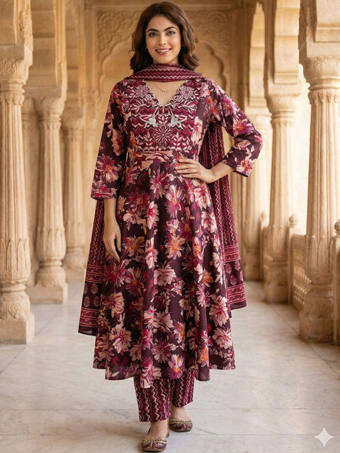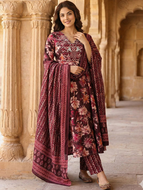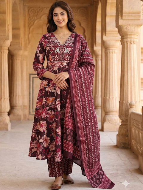 Brown embroidered Kurta with Trousers with dupatta