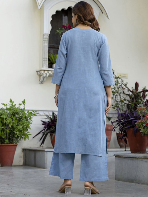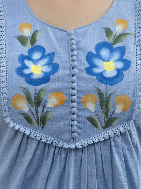 The cotton kurta set is really nice and lightweight. The material is pure cotton, so it feels very breathable and easy to carry all day. The stitching is neat and the hand painted pattern looks classy. It fits well and looks exactly like the photos. Must buy piece.🫶