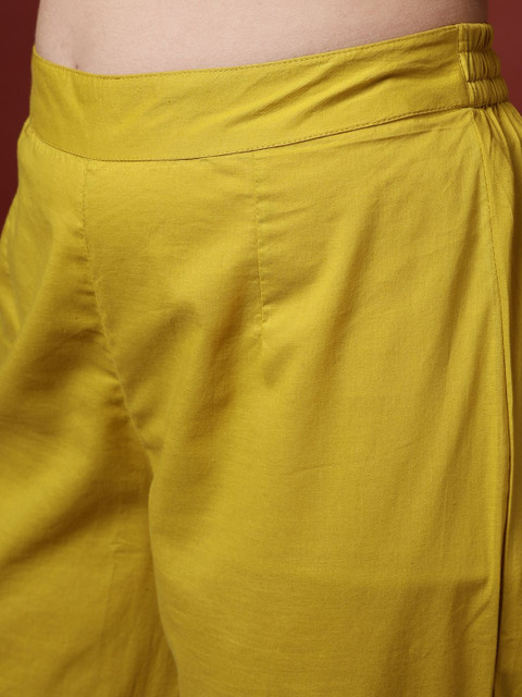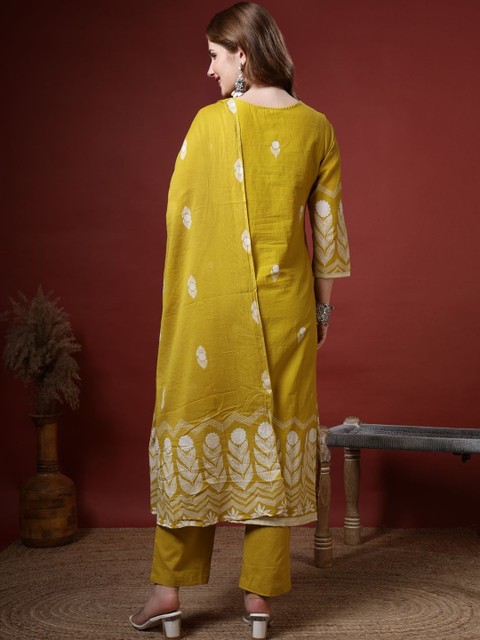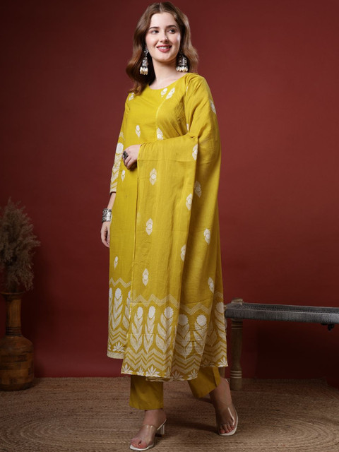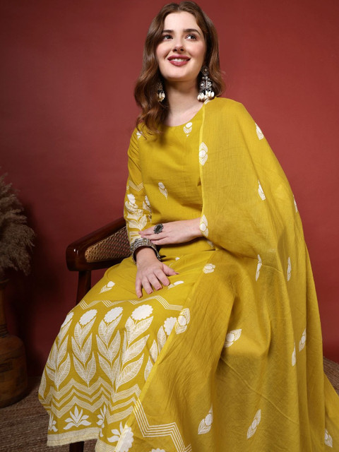 Mustard yellow printed Kurta with Trousers with dupatta