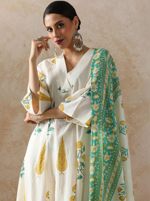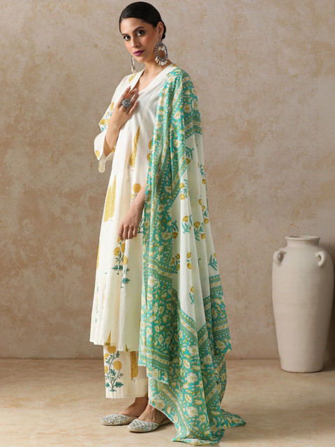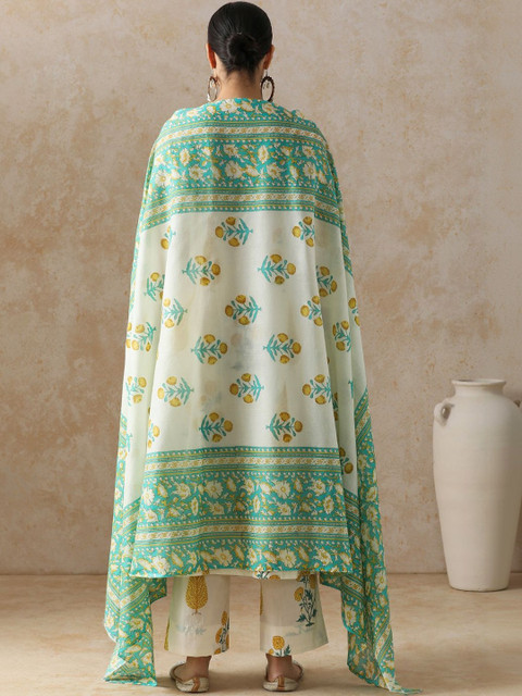 Anouk Women Floral Printed Regular Pure Cotton Kurta with Trousers & With Dupatta
