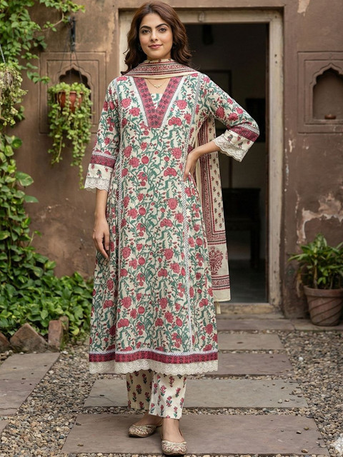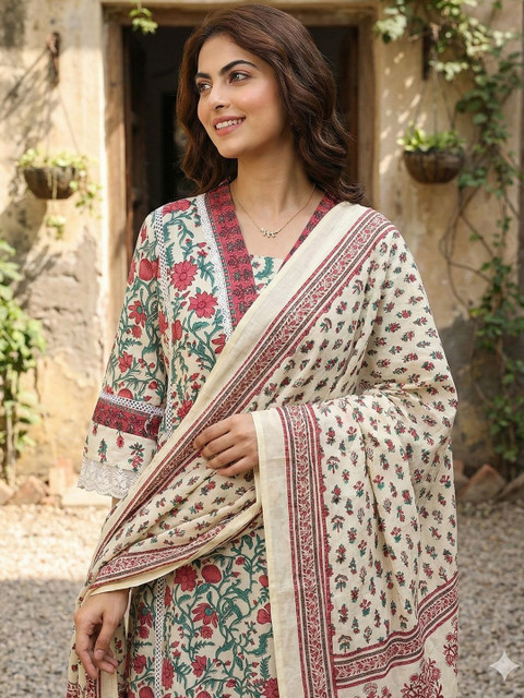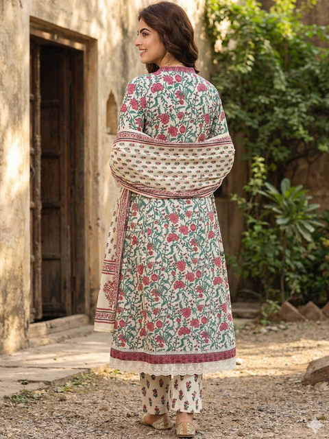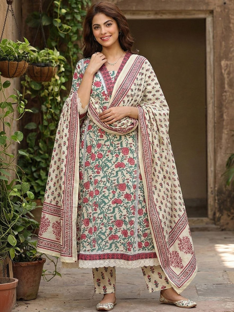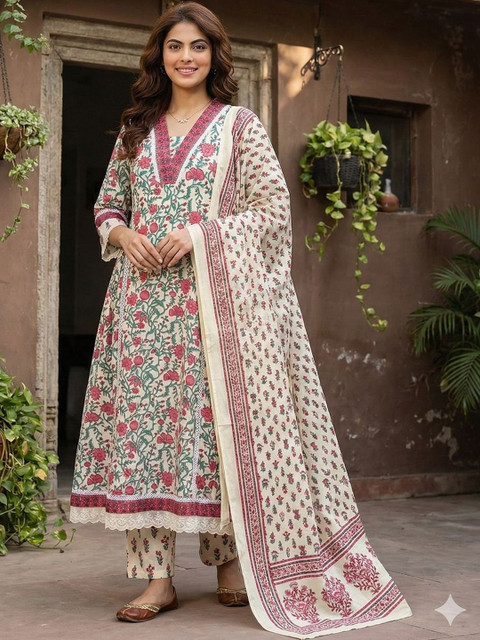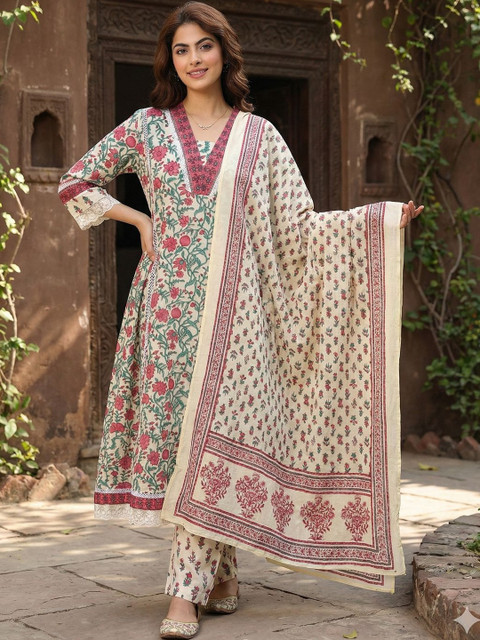 Off white printed Kurta with Trousers with dupatta