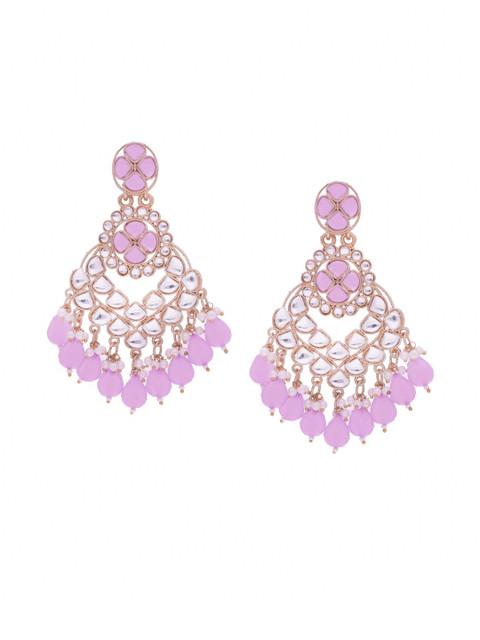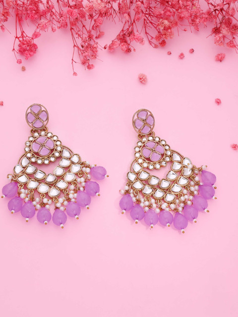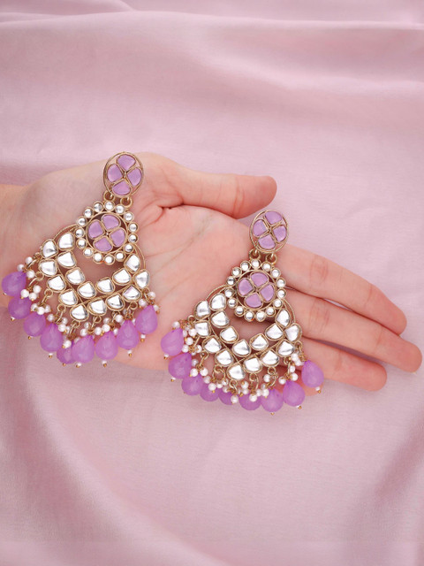 Women Gold-Plated Brass Kundan Ethnic Handcrafted Drop Earrings