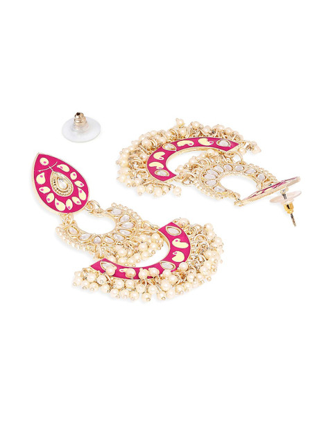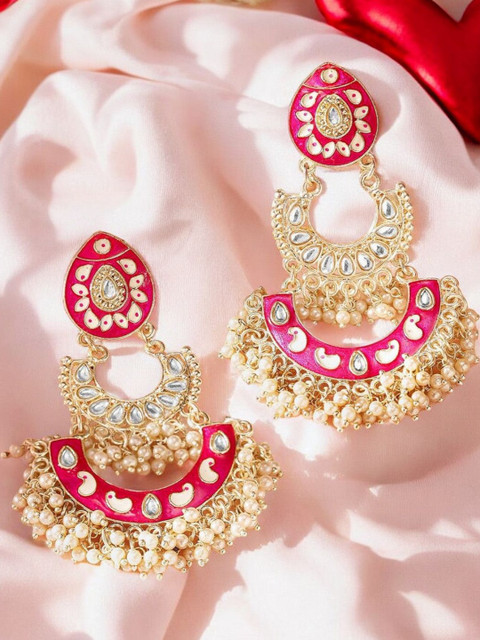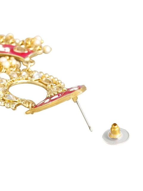 Anouk Rani Pink Meenakari Enamel Kundan Ethnic Large Chandbali Drop Earrings
