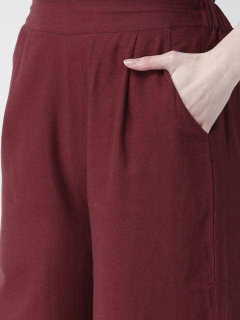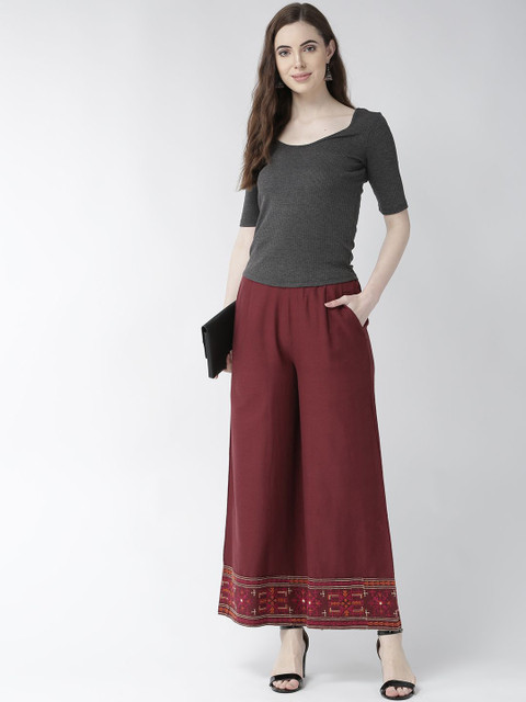 - Maroon and white woven palazzos