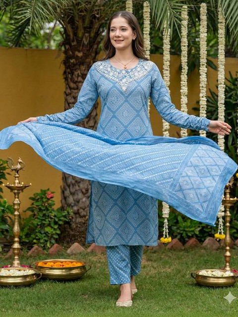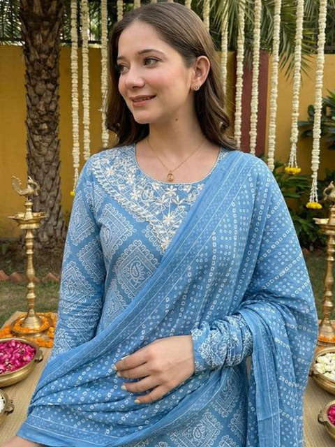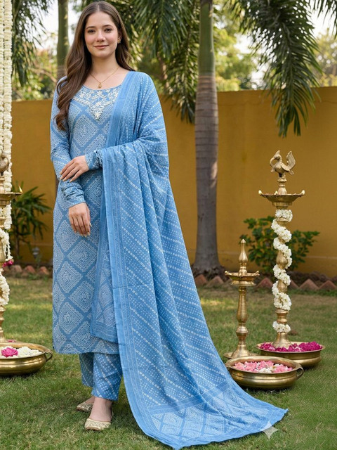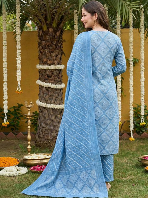 Blue printed Kurta with Trousers with dupatta