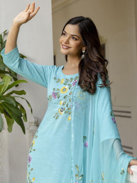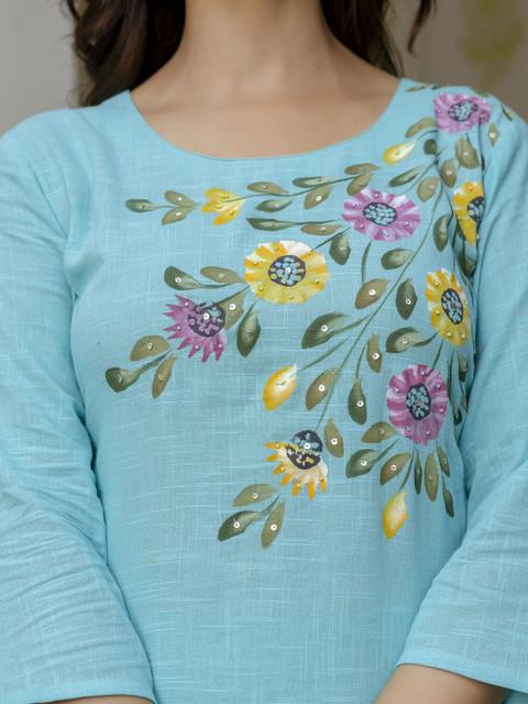 Mera ab ye fav. Suit hai bhai. Iska color most importantly material khadi cotton itna soft and battery. Garmi wali jagah ke liye to ye ak dam perfect hai, mere yahan bohot garmi padti hai. Hand painted hai or hand work bi hai, fit mast hai or duppata bi pura hand painted hai. Five ⭐⭐⭐⭐⭐