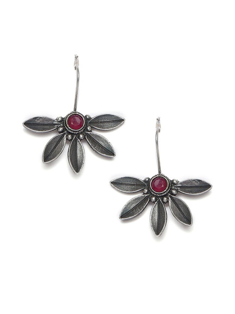 Anouk Women Red Oxidized Artificial Stones Floral Silver-Plated Ethnic Drop Earrings