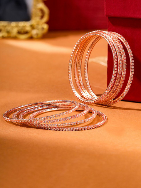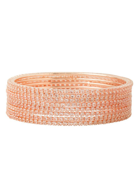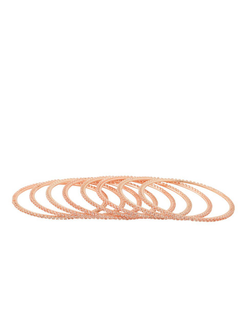 Add a touch of sparkle and sophistication to your jewelry collection with the Anouk Womens Set of 8 American Diamond Rose Gold Plated Bangles. Elegantly crafted with precision and adorned with shimmering American diamonds, these bangles exude timeless charm and festive glamour. The radiant Rose Gold plating enhances their luxurious appeal, making them the perfect accessory for weddings, parties, and traditional celebrations. Whether worn as a full stack for a bold statement or paired down for everyday elegance, this versatile set brings classic beauty to every look.