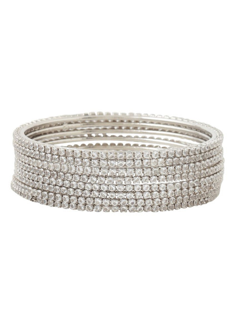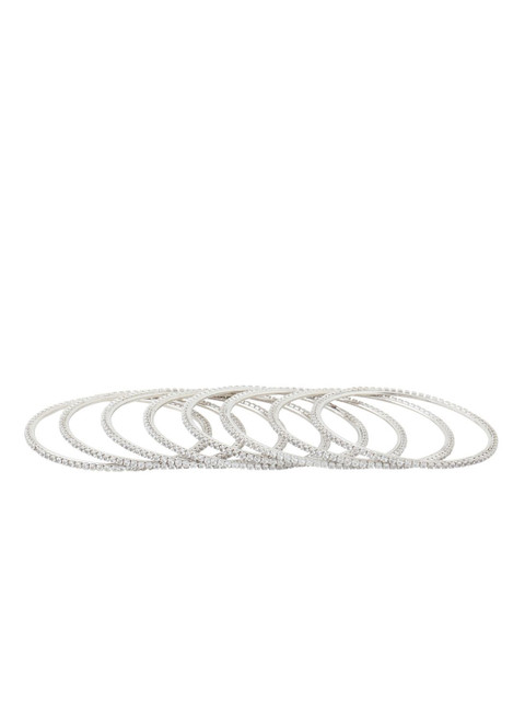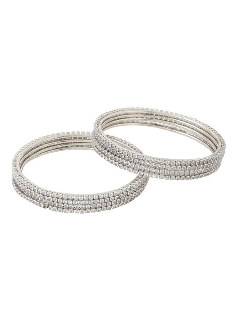 Add a touch of sparkle and sophistication to your jewelry collection with the Anouk Womens Set of 8 American Diamond Silver Plated Bangles. Elegantly crafted with precision and adorned with shimmering American diamonds, these bangles exude timeless charm and festive glamour. The radiant Silver plating enhances their luxurious appeal, making them the perfect accessory for weddings, parties, and traditional celebrations. Whether worn as a full stack for a bold statement or paired down for everyday elegance, this versatile set brings classic beauty to every look.