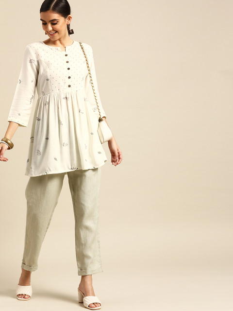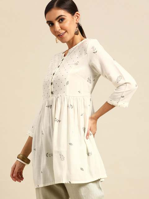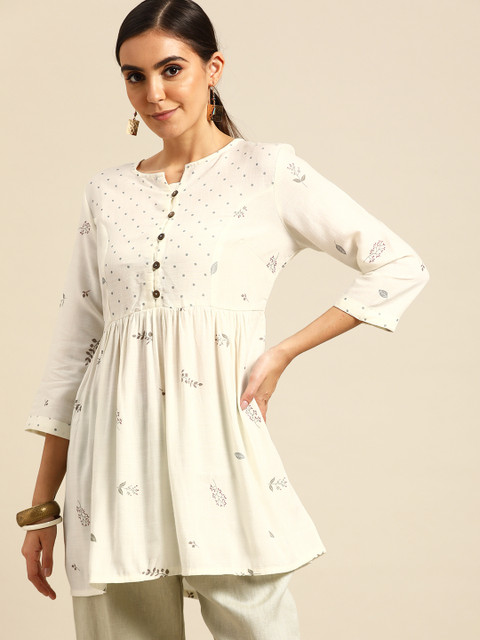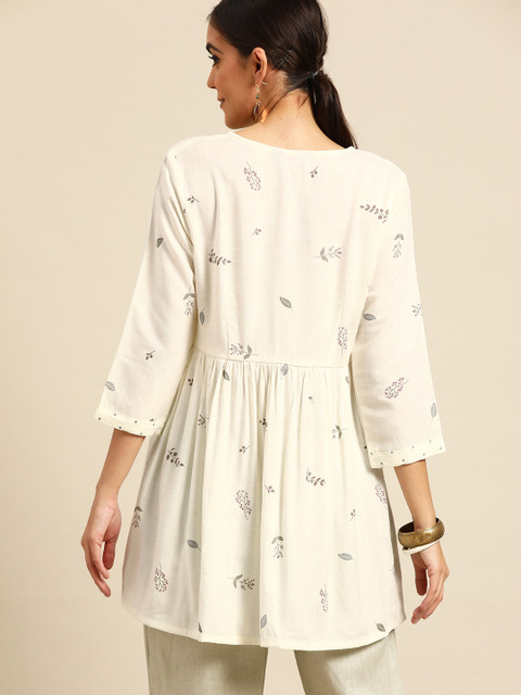 3 reviews for Anouk Women White & Grey Pure Cotton Floral Printed Kurta