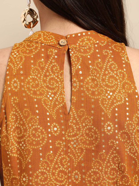 I absolutely loved this Anouk Yellow Bandhani Printed Kurta! The fabric feels soft and comfortable, perfect for both casual outings and festive occasions. The Bandhani print adds a traditional touch, making it stand out.