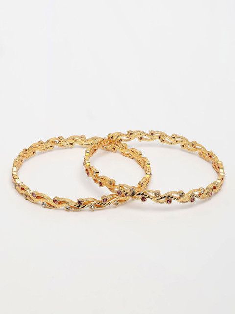 Set of two gold-plated bangles, each has white and pink cubic zirconia stone -studded details, secured with slip-on closure