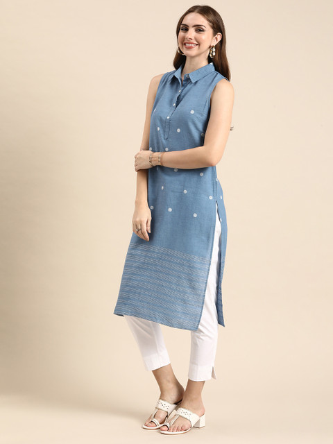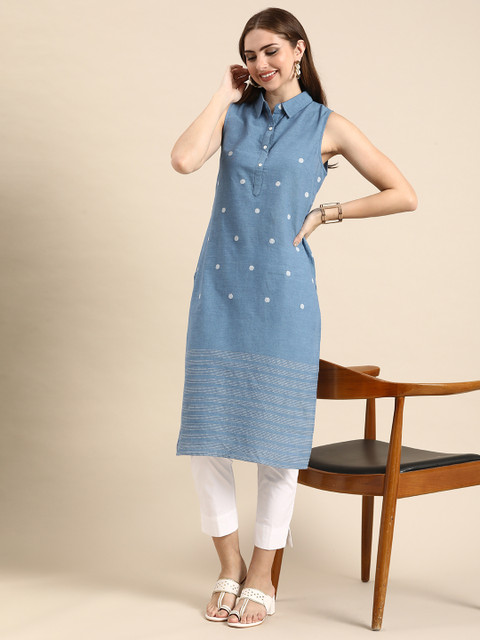 Anouk Woven Design Shirt Collar Cotton Republic Day Republic Day Kurta