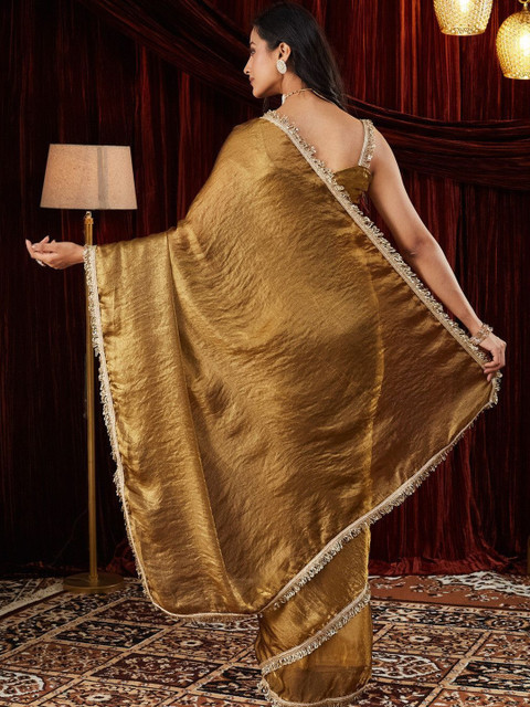 Women Embellished Bollywood Tissue, Pure Silk SareeWith Blouse