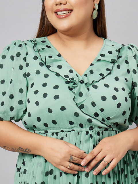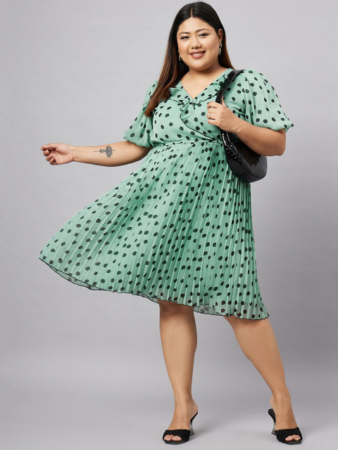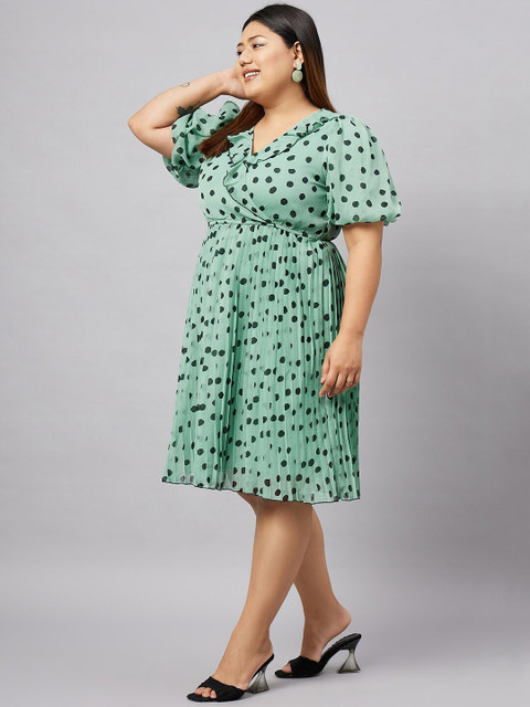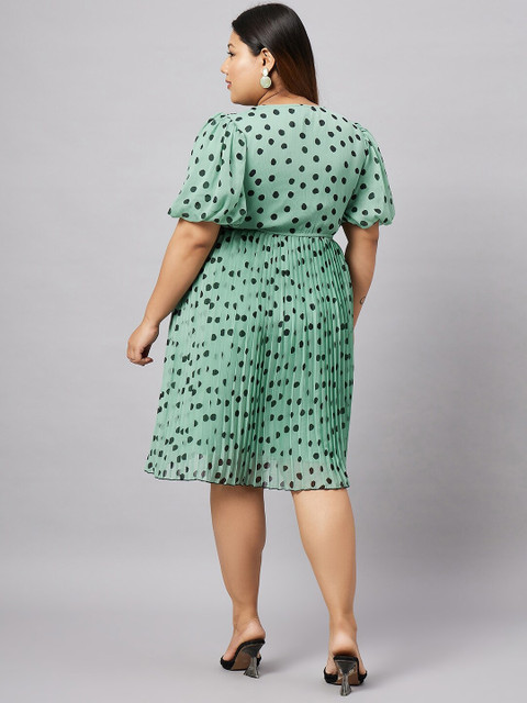 - Green polka dots print fit and flare dress