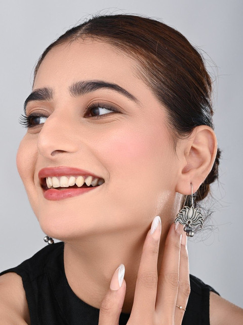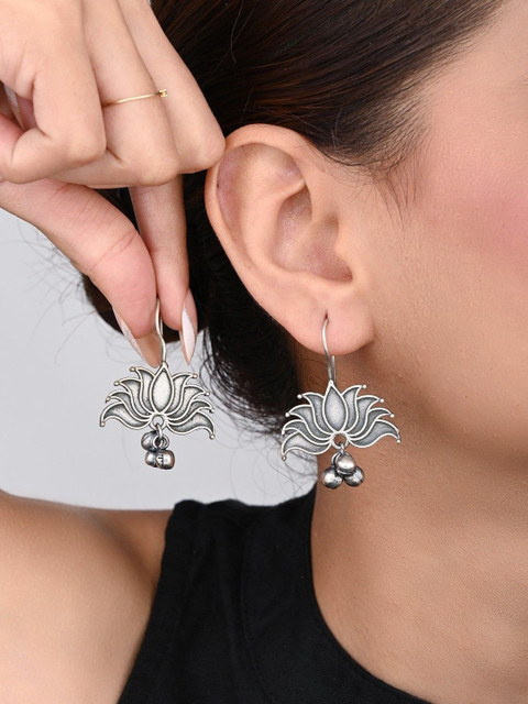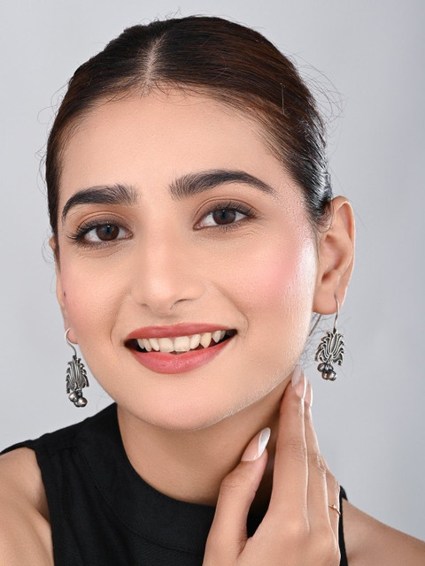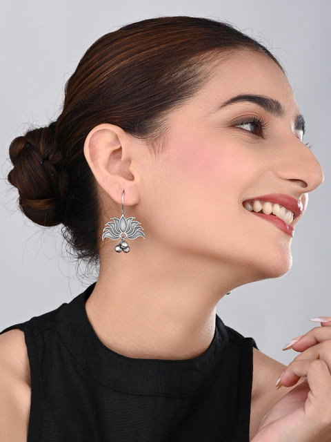 Silver-toned contemporary drop earrings, silver-plated