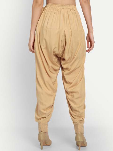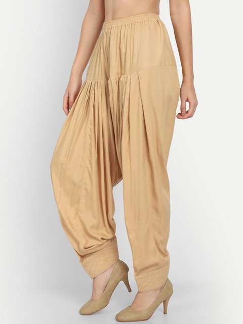 Beige solid loose-fit mid-rise salwar, has gathered and pleated detail has an elasticated waistband with slip-on closure and 1 pocket