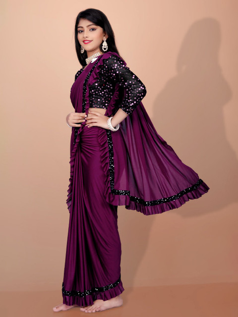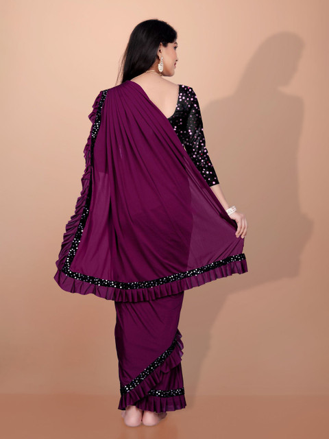 - Embellished saree with riffled border