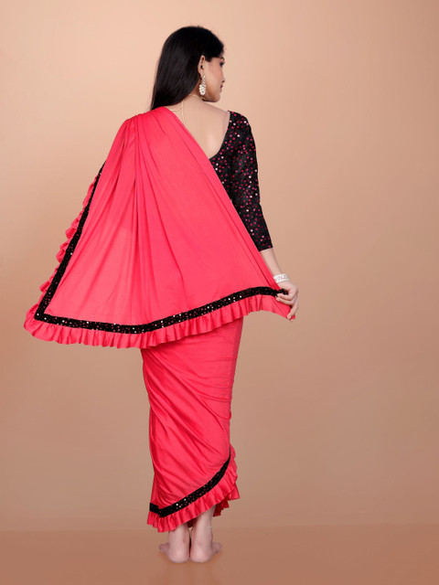 • Embellished saree with ruffle border