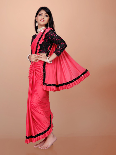 APNISHA Girls Sequinned Ready to Wear Saree
