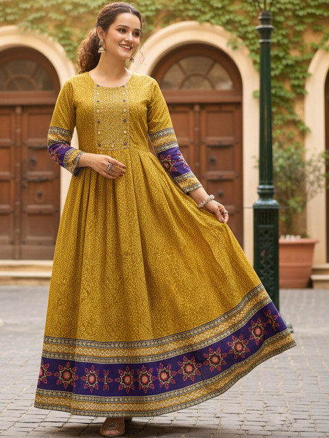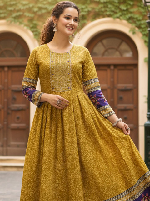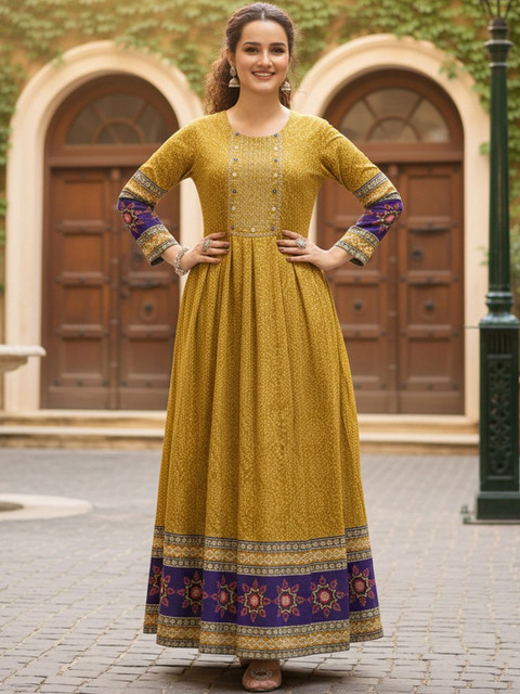 ARADHNA Women Ethnic Motifs Printed Thread Work Indie Prints Kurta