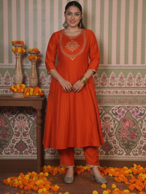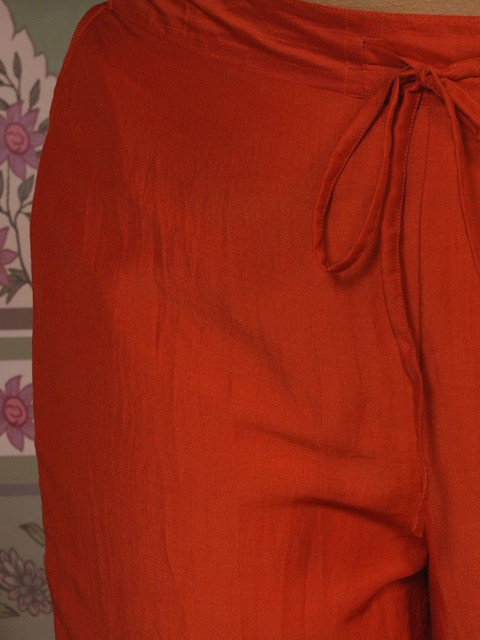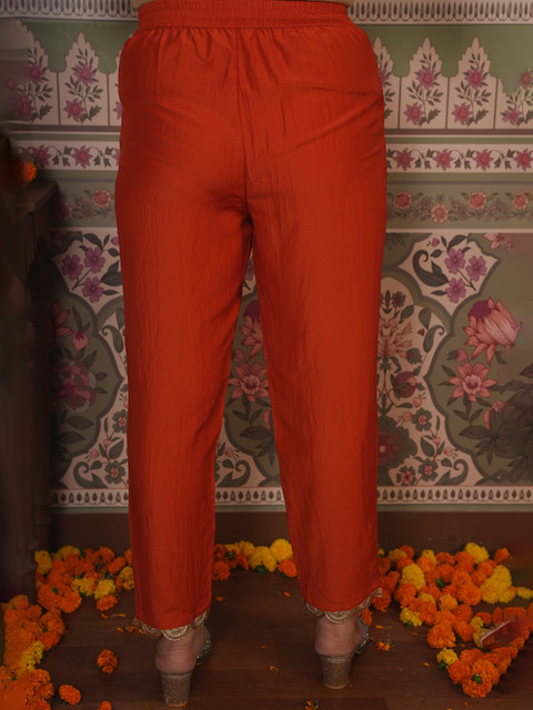 - Orange and gold-toned woven palazzos
