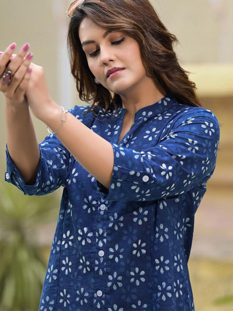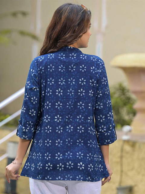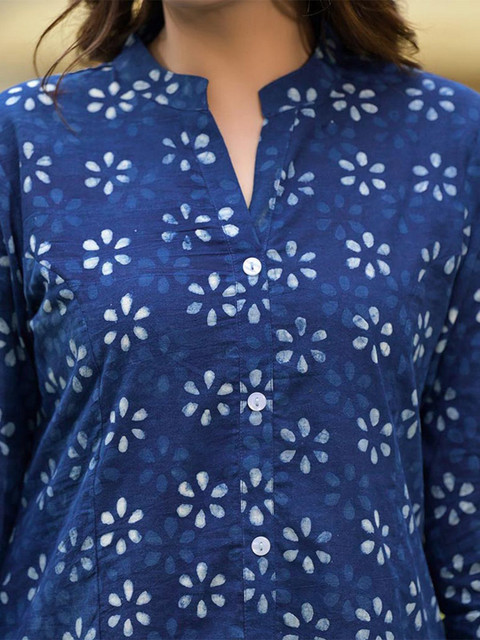 2 reviews for ARAVALII Floral Print Mandarin Collar Pure Cotton Top