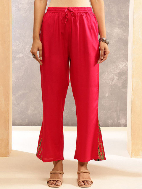 Pink solid trousers, has an elasticated waistband with slip-on closure has 2 pockets