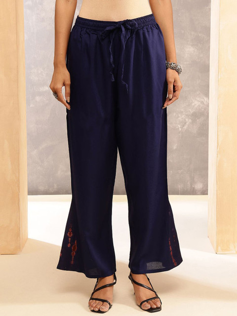 Blue solid trousers, has an elasticated waistband with slip-on closure has 2 pockets