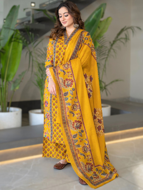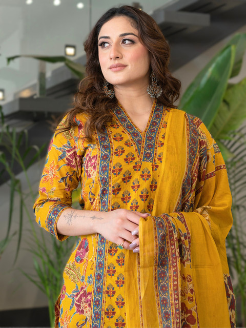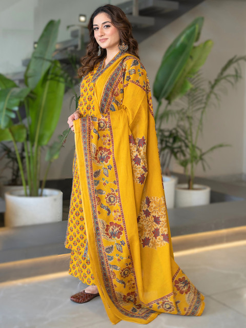 Yellow printed Kurta with Palazzos with dupatta