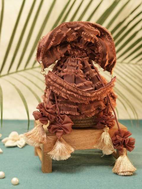 Brown and cream embroidered potli