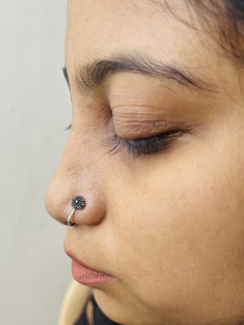 Silver toned and black stud nosepin