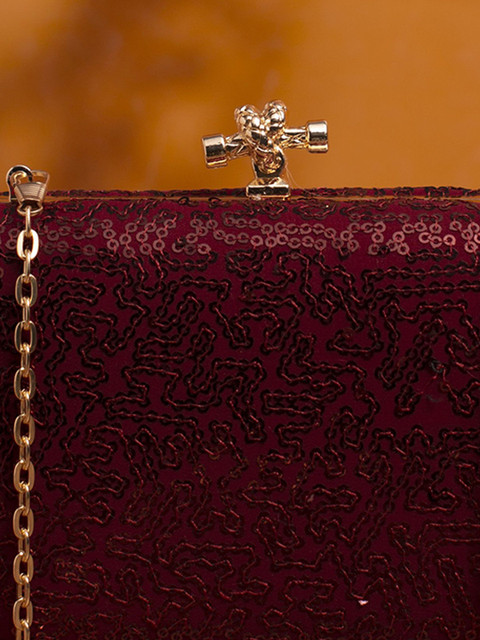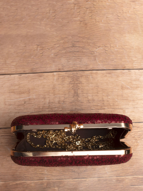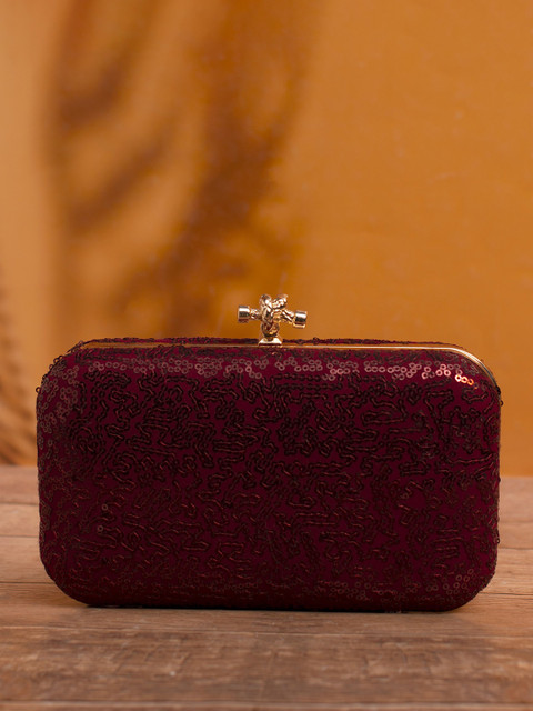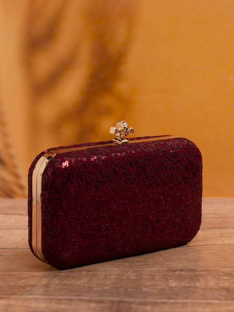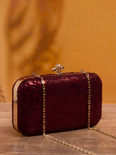 Maroon and gold-toned embroidered box clutches