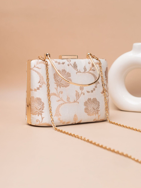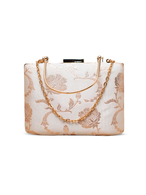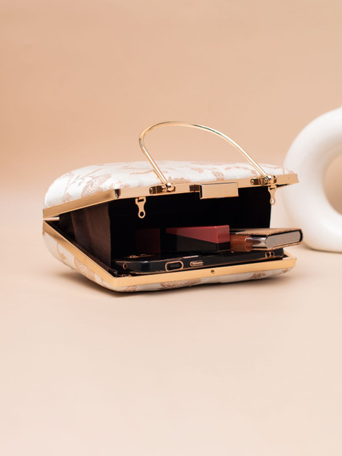 Off white and rose gold embroidered box clutches