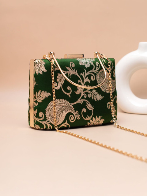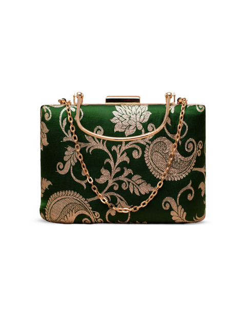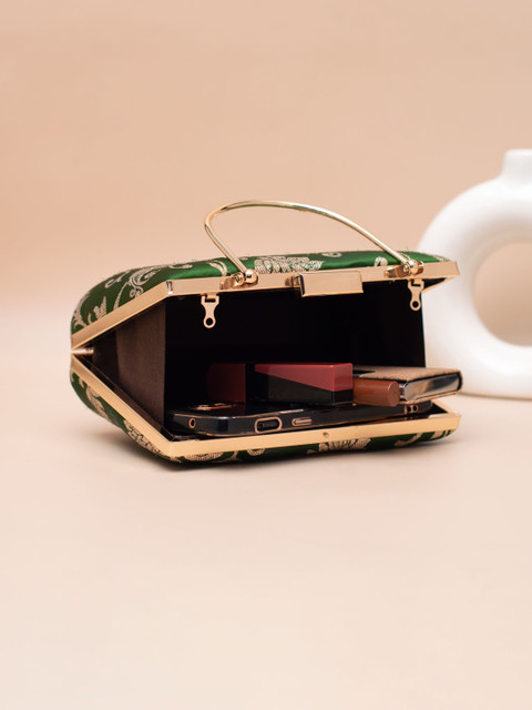 Green and gold-toned embroidered box clutches
