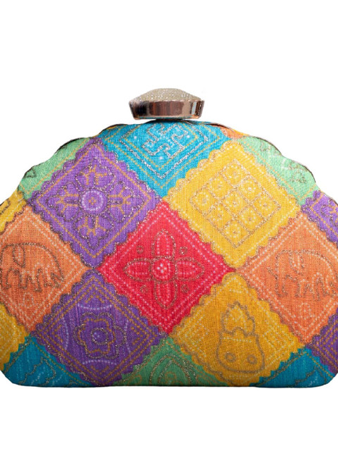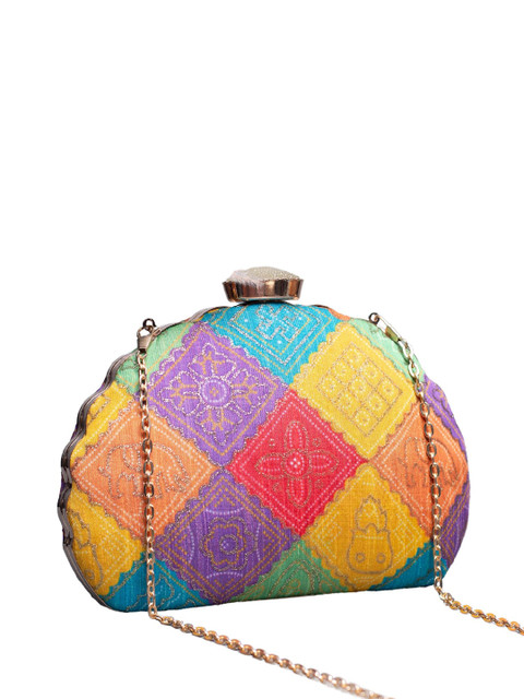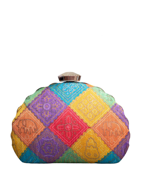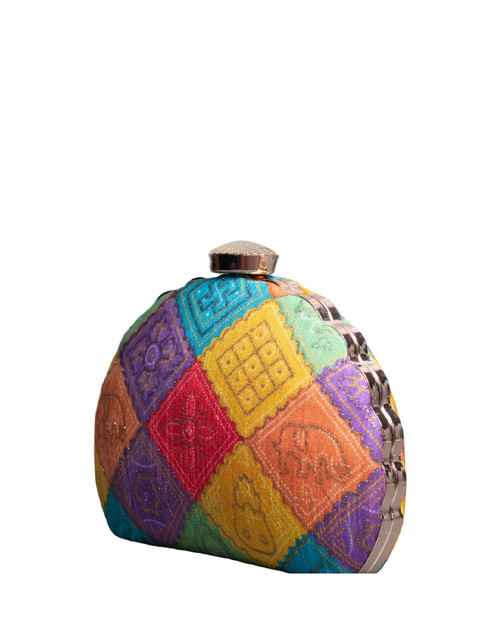 Yellow and purple & blue floral embroidered embellished box clutches