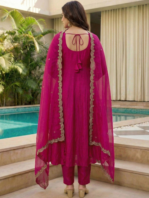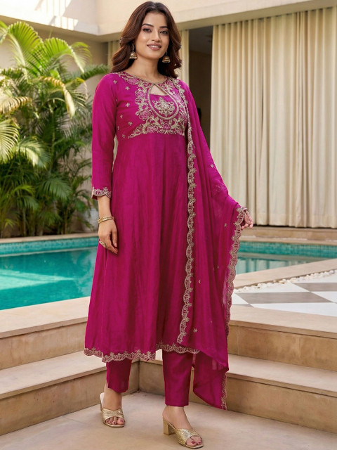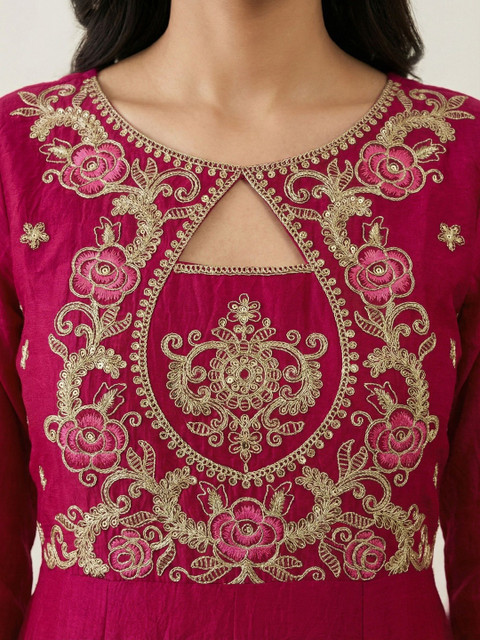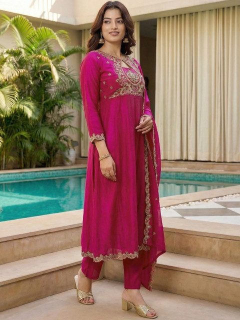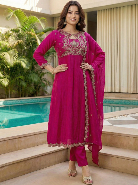 Magenta Embroidered Kurta with Trousers With Dupatta