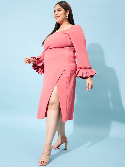 • Pink solid bodycon dress