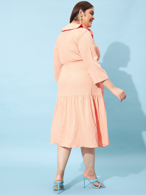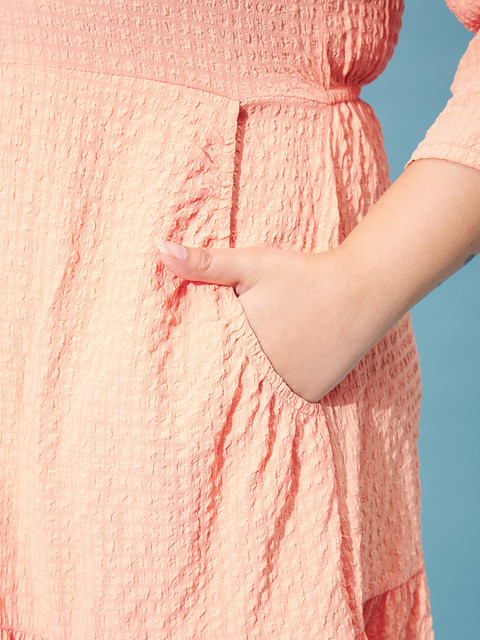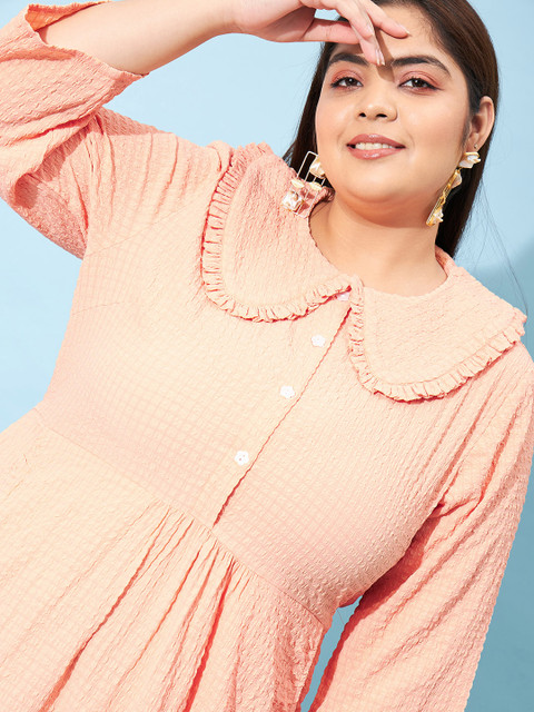 - Peach self design fit & flare dress