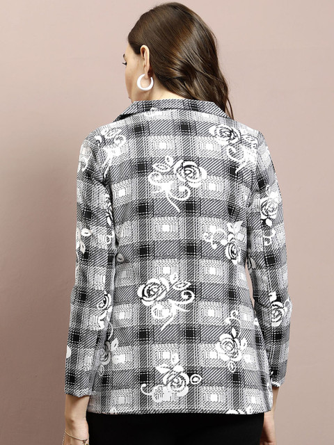 Black and white printed regular-fit blazer, has a notched lapel collar, single-breasted with button closure, long sleeves, two pockets, and straight back hem