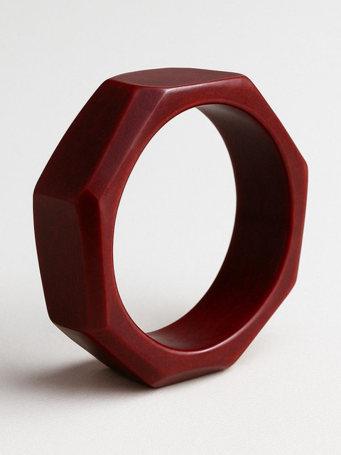 Maroon hexagon-shaped glossy bangle, secured with slip-on closure