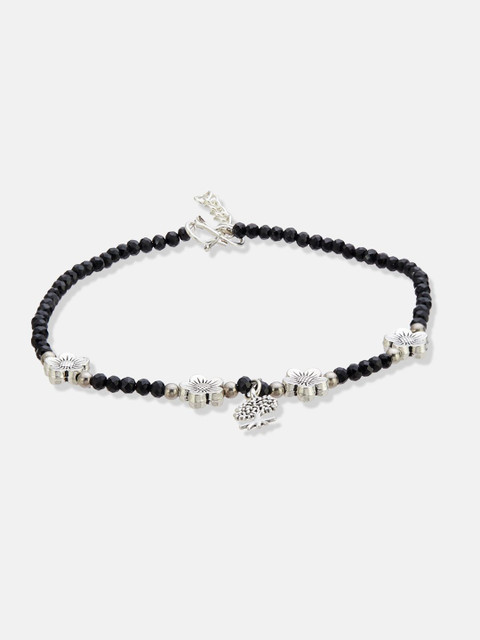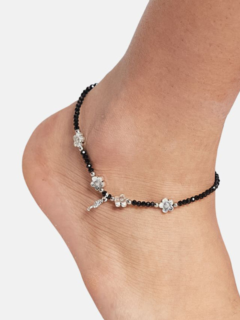 Silver-plated artificial beads anklet s-hook closure