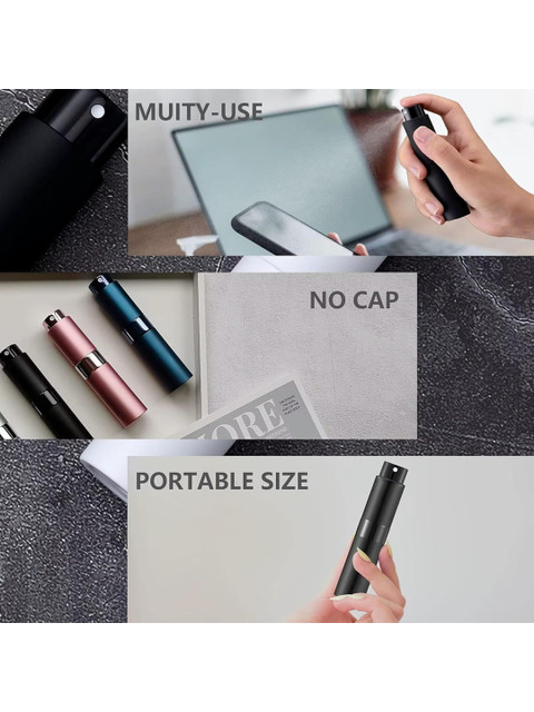 Portable Size Travel perfume atomizer measures about 0.9 inch in diameter, 3.8 inch in height and 0.27 oz/ 8 ml in capacity. It can easily fit in your pocket, purse, handbag or backpack, super convenient to use in your daily life. Easy to Use Twist the lid clockwise and the spray nozzle will come out and be ready to use. Twist the lid opposite direction to retrieve the nozzle. No need to take off or put on the lid like other bottles. Widely Used Perfect for storing some of your favorite perfume/aftershave/makeup removers in a smaller container without having to take the whole bottle on holiday. A good choice for traveling, dating, party.