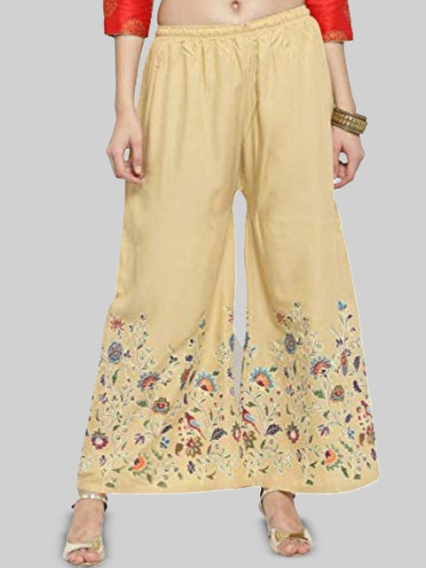- Beige and pink woven palazzos