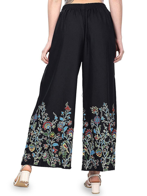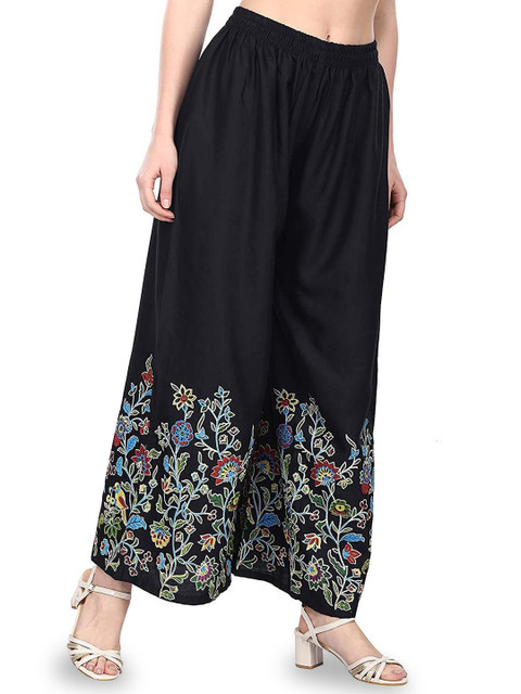 - Black and peach-coloured woven palazzos