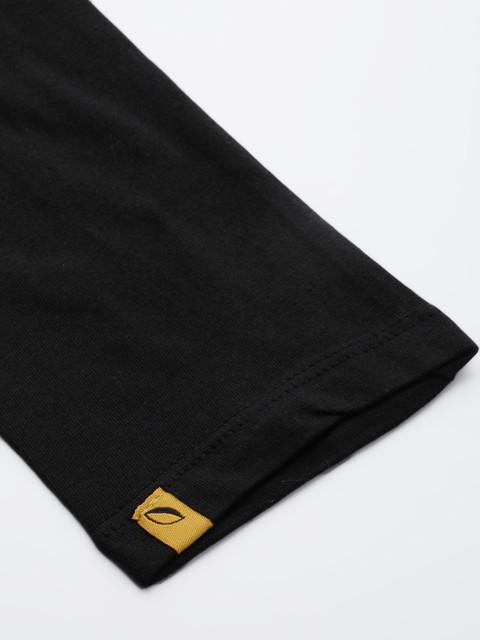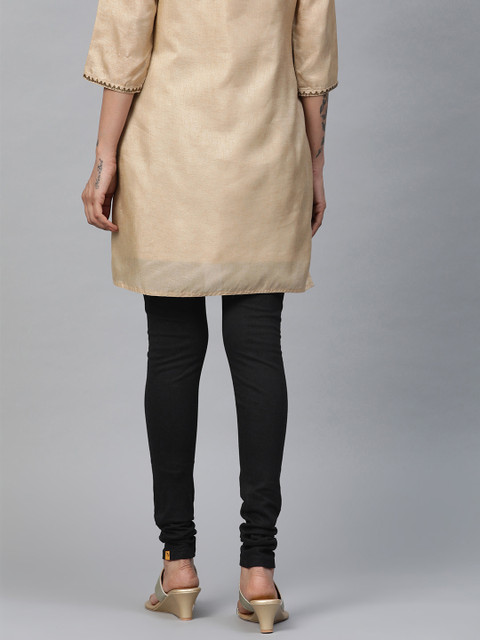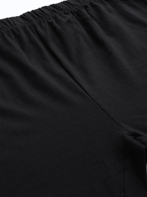 Black solid churidar leggings, has an elasticated waistband, slip-on closure
