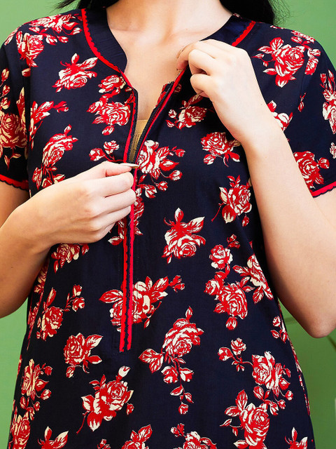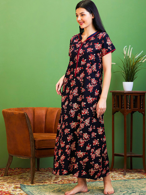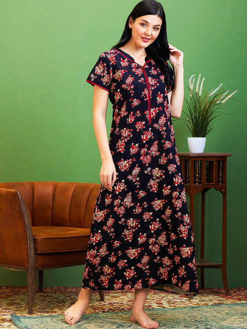 - Black printed maternity nightdress