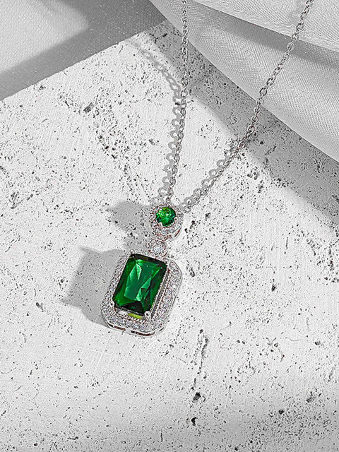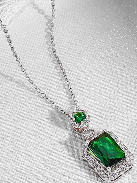 Silver-plated, has green natural emerald stone studded square shaped pendant