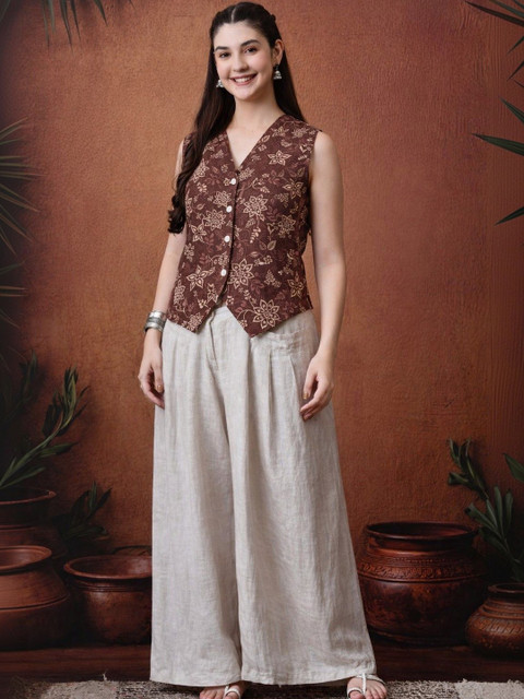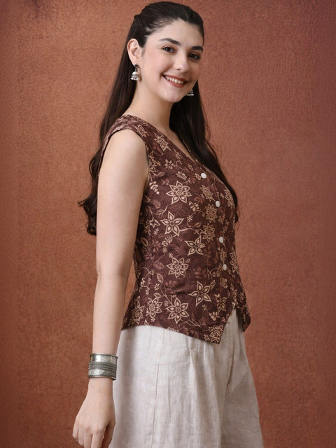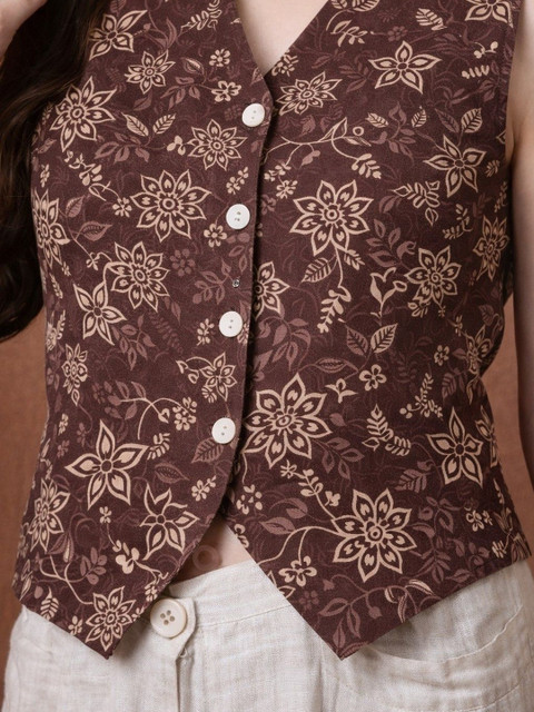 Style this printed cotton waistcoat with high-waist trousers or denim shorts and minimal accessories for an effortless smart-casual look.